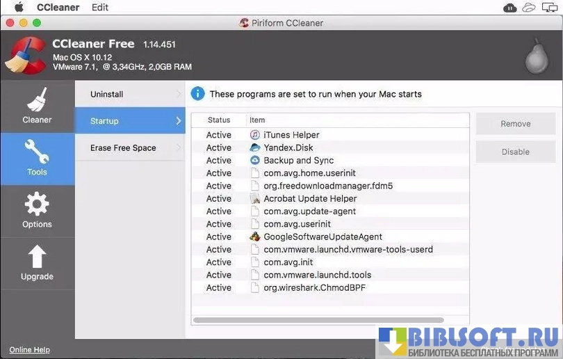 CCleaner для macOS – это инструмент для очисти системы от файлов, оставшихся после некорректного удаления программ, игр и утилит. Приложение способно устранять ошибки реестра, очищать его и создавать бэкап-файлы для его восстановления в случае удаления нужных файлов.
