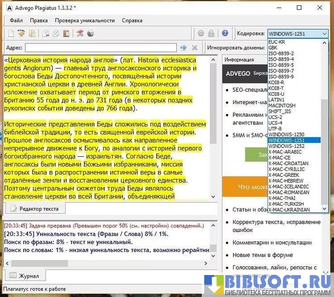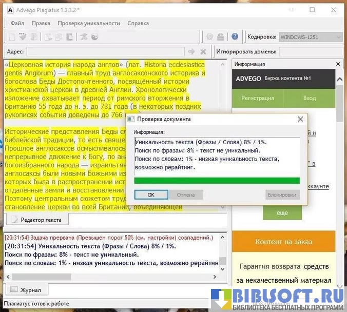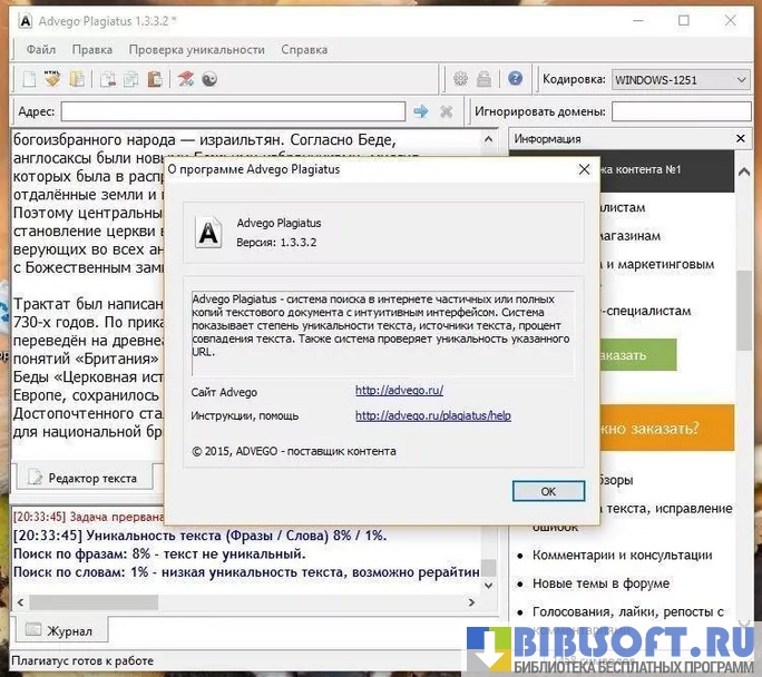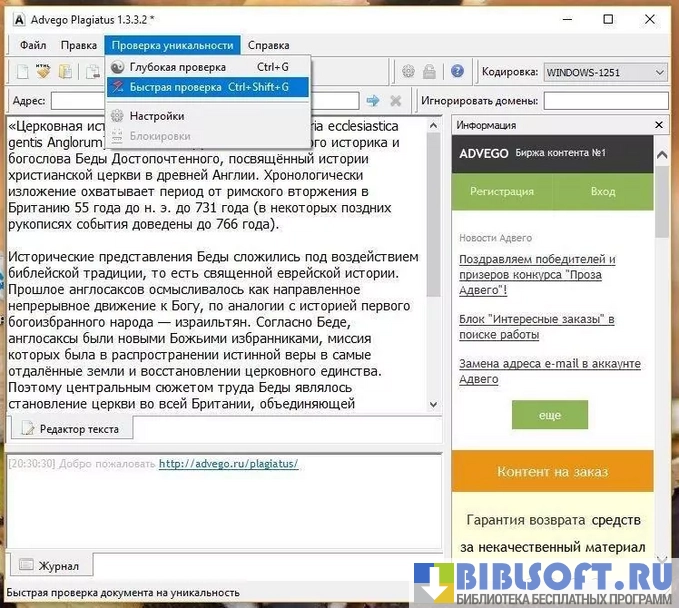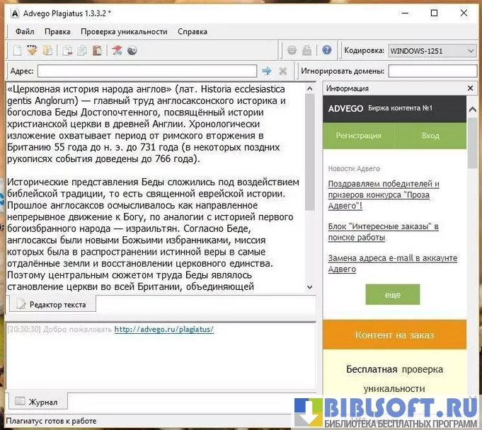 Advego Plagiatus – утилита для проверки уникальности текста или адреса URL. Создана командой разработчиков биржи копирайтинга Адвего для пользователей сервиса.
