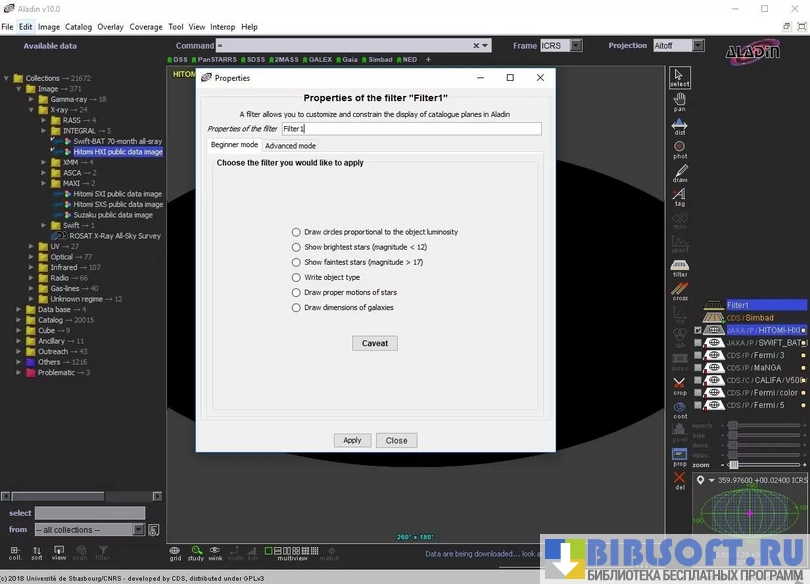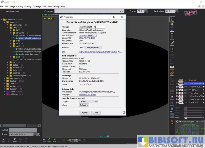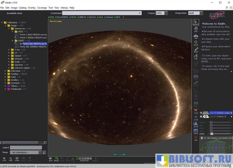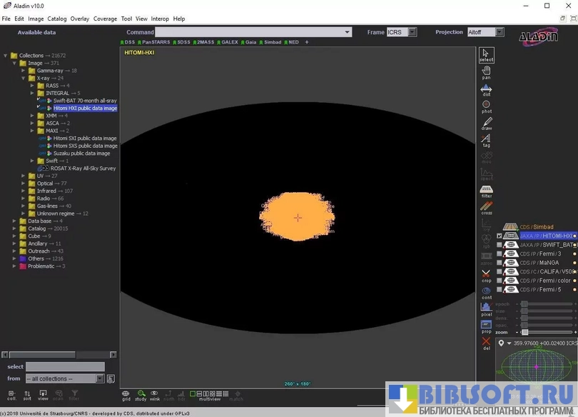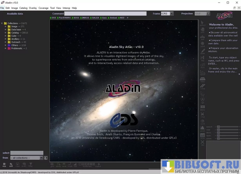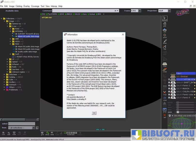 - доступ к базам данных VizieR, NASA, SIMBAD и т.д.;