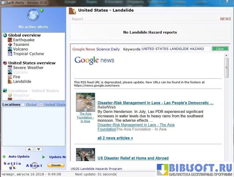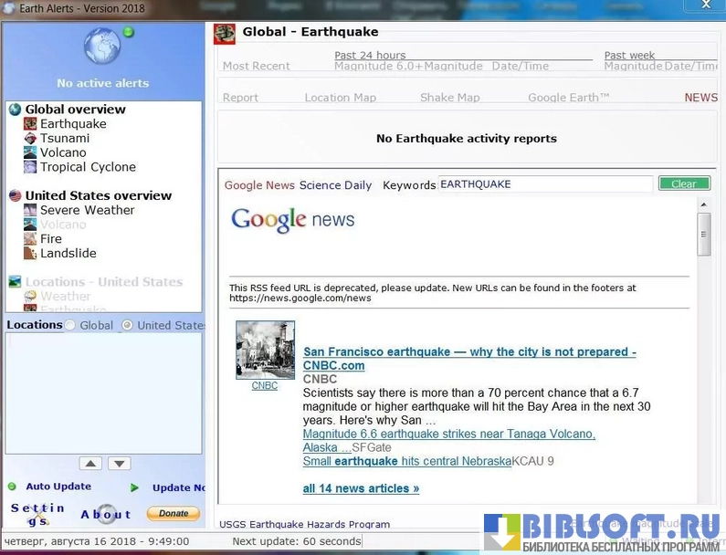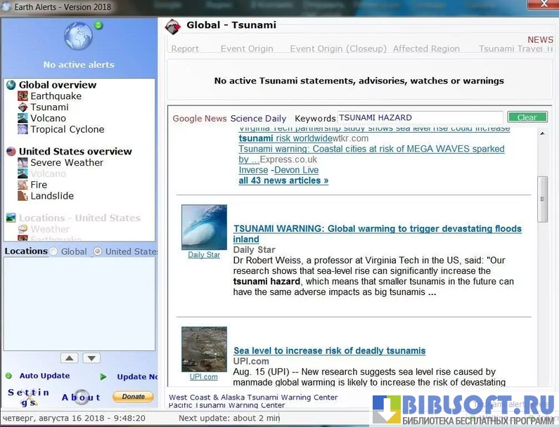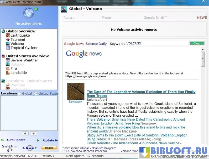 - Возможность получения самых свежих данных о катаклизмах в мире из достоверных источников, проверенных временем;