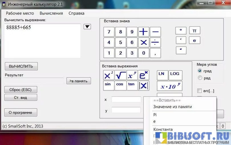 Инженерный калькулятор – это многофункциональная программа для простых и сложных расчетов, в которой собраны наиболее важные вычислительные опции. Поддерживает ввод математических выражений с помощью скобок, чисел, знаков и точных операций.