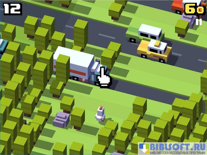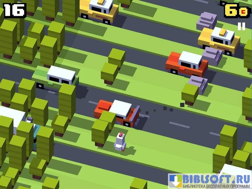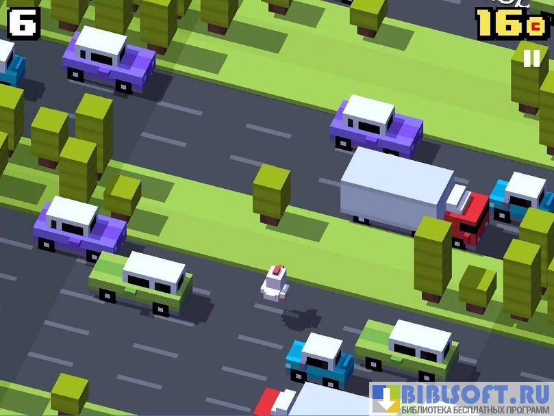 Crossy Road - это бесконечная аркадная игра с минимальной кубической графикой и случайно сгенерированными локациями. Все 50 персонажей выполнены разработчиками в поп-арт и ретро стиле. Задача пользователя – двигать главного героя через автомобильные дороги, железнодорожные пути и реки, пока не случится проигрыш.