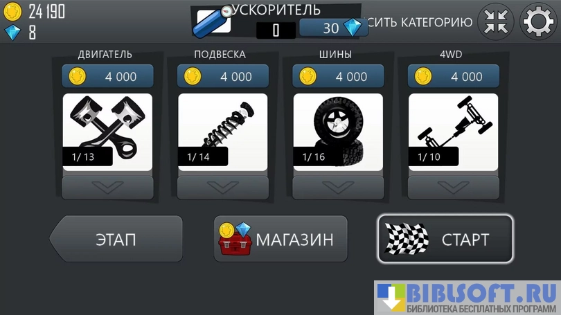 Интересным нюансом является возможность совершенствовать детали автомобиля, расходуя на улучшения золотые монеты.