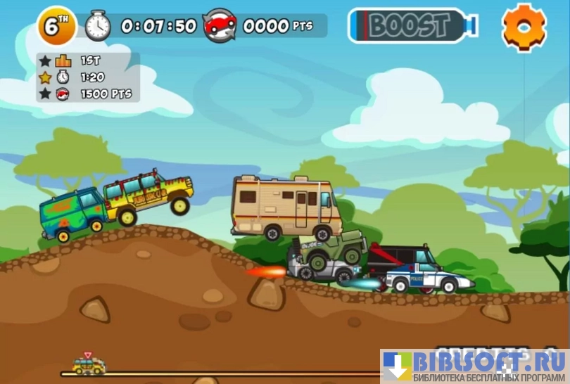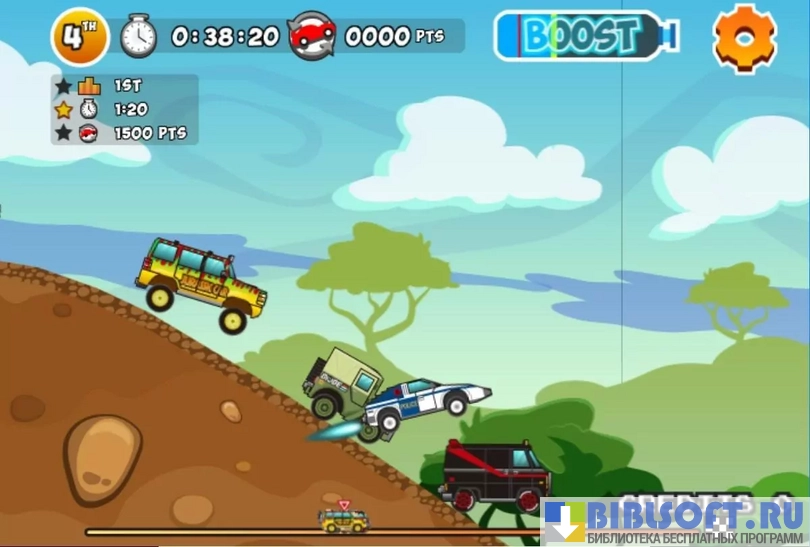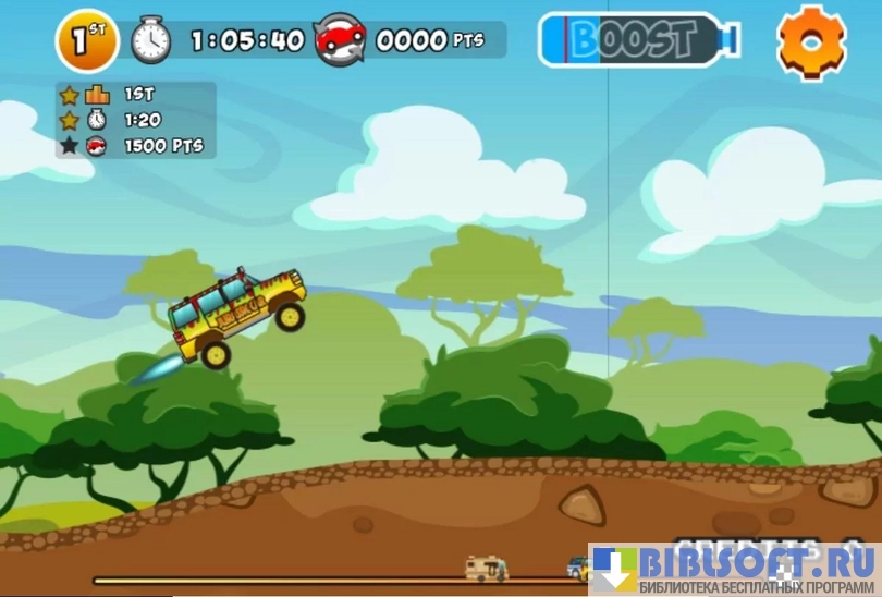 - Умело чередуйте работу «газом» и «коробкой», чтобы взбираться на «непроходимые холмы», и «давите тапку» в пол перед трамплинами, чтобы набрать достаточную скорость для выполнения трюка;
