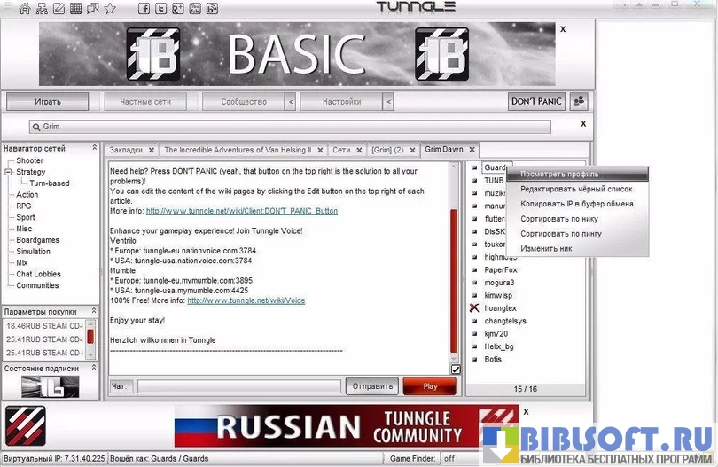Tunngle - программа, созданная для игр с мультиплеером. Она соединяет несколько игроков в подобие локальной и сети, благодаря чему можно играть с другими людьми.