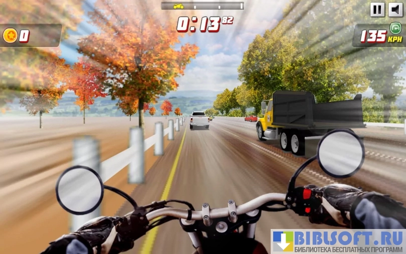 - Маневрируйте в потоке автомобилей, опережайте других гонщиков, выжимайте «все соки» из своего байка на прямых участках дороги и умело вписывайтесь в повороты, чтобы не вылететь из гонки;