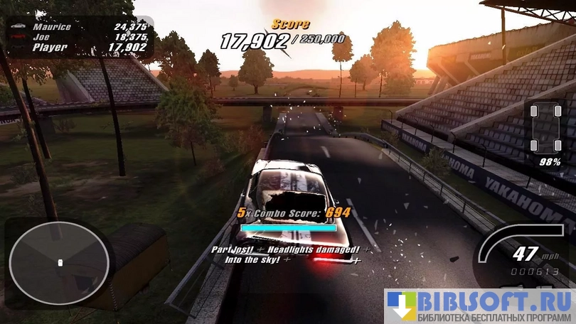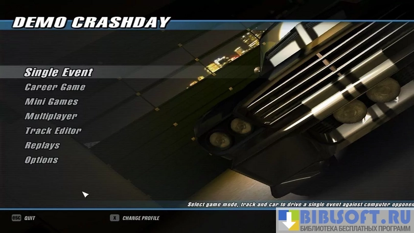 Crashday – компьютерный симулятор с гонками на выживание для одиночной и многопользовательской игры. Простой геймплей, понятный интерфейс и удобное управление машиной. Основные режимы – Stunt Show, LAN и Wrecking Match. Есть демо-версия, рассчитанная на 50 запусков. Симулятор предполагает 8 видов соревнований.