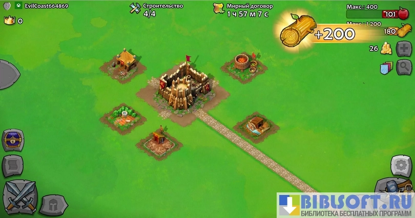 - Добывайте еду и стройматериалы, чтобы иметь возможность принять в свое племя новых поселенцев и начать строить свой первый город;