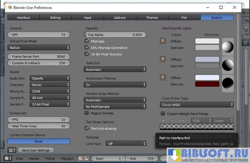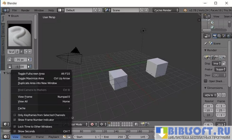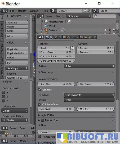 - для работы с некоторыми готовыми 3D моделями нужно подключать плагины от Blender Foundation или сторонних разработчиков;