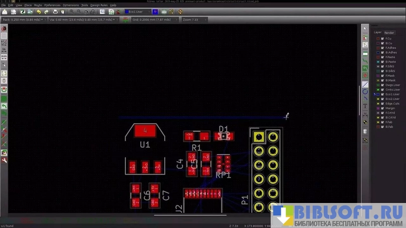 KiCad EDA для для Windows – программный комплекс с открытым исходным кодом, предназначенный для создания проектов печатных плат и электрических схем. Состоит из набора подпрограмм, автоматизирующих разработку электронных устройств.