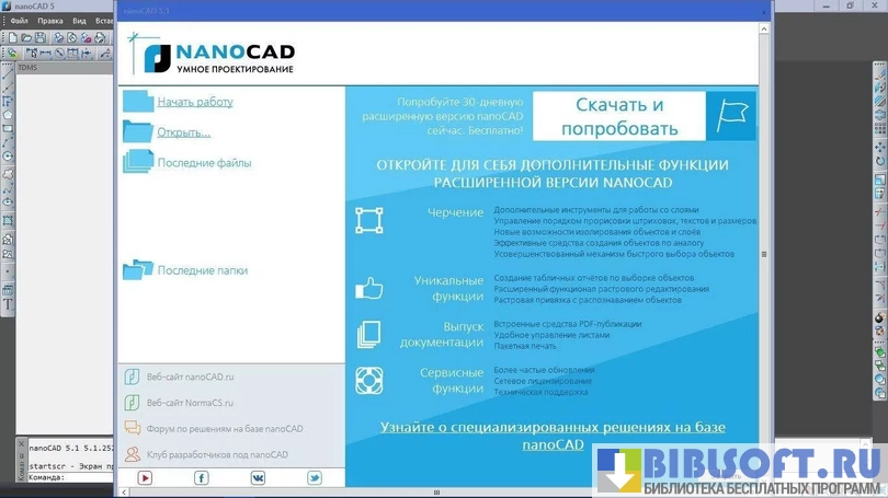 nanoCAD – разработка российских программистов, являющая собой универсальную САПР-платформу со всеми необходимыми инструментами для создания и проектирования чертежей. Программа поддерживает файлы разных версий AutoCAD, что дает возможность редактировать чертежи в других программах без потери важных данных.