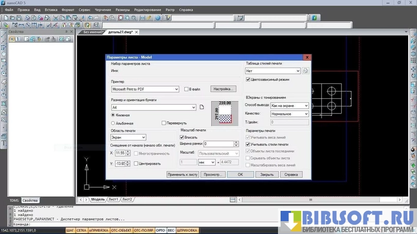 - печать готовой технической документации на любом принтере, установленном на компьютере с использованием требуемого формата бумаги.