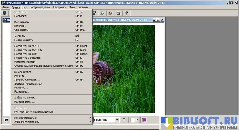 FreeVimager – симбиоз графического редактора и интерактивного мультимедиа-плеера для Windows. Позволяет просматривать и редактировать .GIF-, .JPEG-, .PNG-, .BMP-, .TIFF- (многостраничные), .EMF- .PCX- и .PDF-файлы.