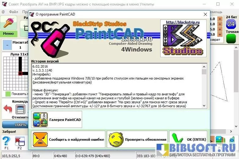 PaintCAD – многофункциональный графический редактор для Windows. Предназначен, в первую очередь, для рисования пиксель-артов и создания шрифтов. Оснащен огромным количеством автоматизированных инструментов для редактирования изображений в один клик. Может быть использован для создания GIF-анимация и изменения видеофайлов .AVI-формата.