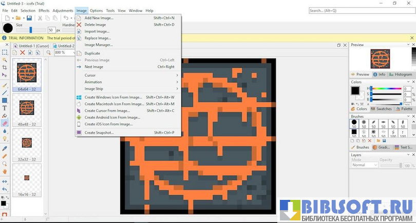 - Создание нескольких иконок различного расширения в одном файле формата Ico;