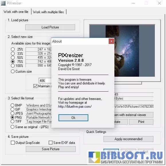 PIXresizer – программа для быстрого изменения размера фотографий с целью экономии пространства на жестком диске или оптимизации фотографии для размещения в социальных сетях или передачи через Интернет.