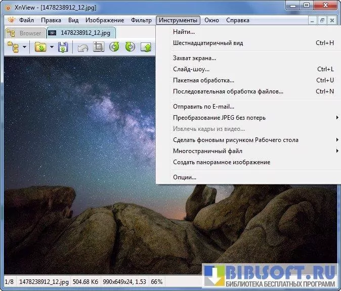 Программа XnView является мощным кроссплатформенным средством, которое используют для просмотра, хранения и редактирования изображений. Помимо функций конвертера большинства форматов графических файлов, приложение умеет создавать слайд-шоу, работать с веб-страницами, просматривать анимированные изображения, обрабатывать листы эскизов и выполнять другие нужные пользователю манипуляции.