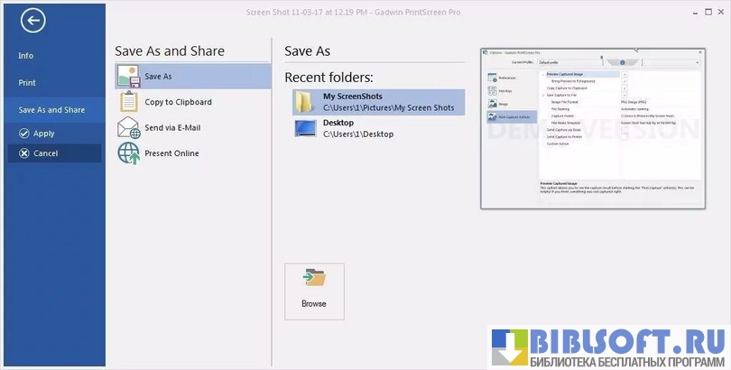 Gadwin PrintScreen - программа, которая позволяет создавать скриншоты всего, что находится на экране монитора. Можно не только фотографировать экран, но и фиксировать активное окно.