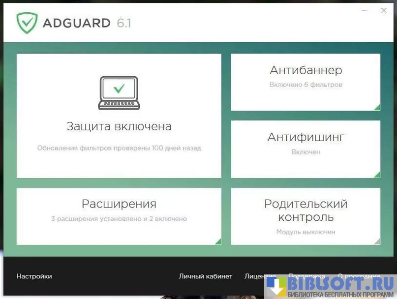 - Adguard защищает пользователя от мошенников, слежки в Глобальной Паутине и вирусного ПО;