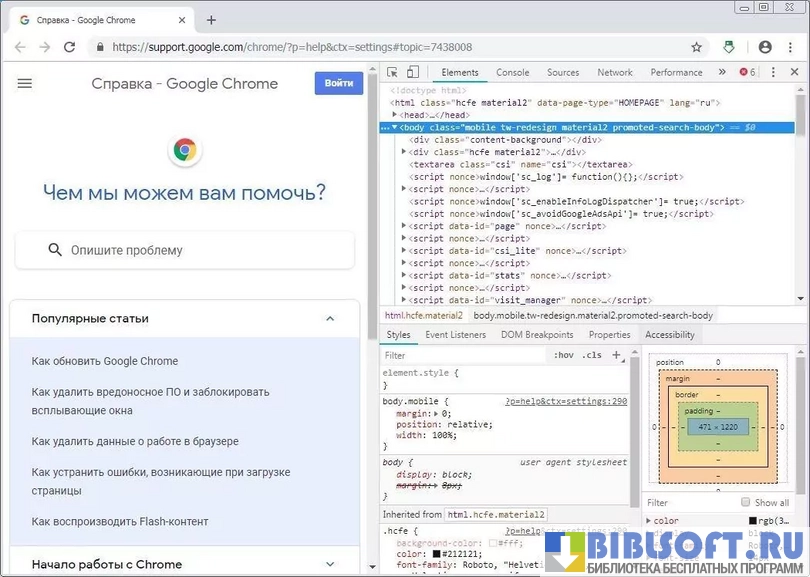 Особенности браузера