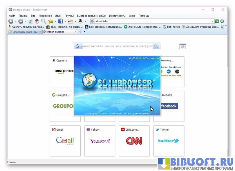 SlimBrowser - web-браузер, созданный на базе передовой TPI технологии, использующий Trident технологию и оперативно совместимый с ОС Windows XP/Vista/7/8. Веб-обозреватель предоставляет возможность совершать online-серфинг без помех и легко настраивать под себя пользовательский интерфейс.