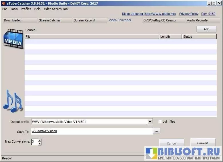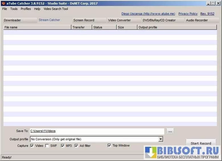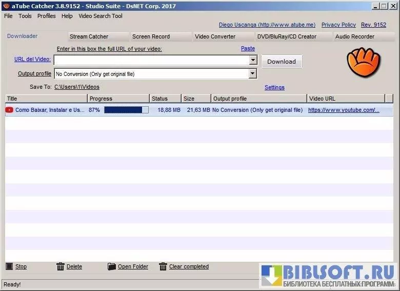 Работая с aTube Catcher, можно скачивать одновременно несколько видео. Программа предоставляет своим пользователям возможность не только преобразовывать видеофайлы в другие форматы, но и создавать VCD, DVD и Blu-ray диски из записываемого или загружаемого контента. В утилите есть 9 удобных функций: