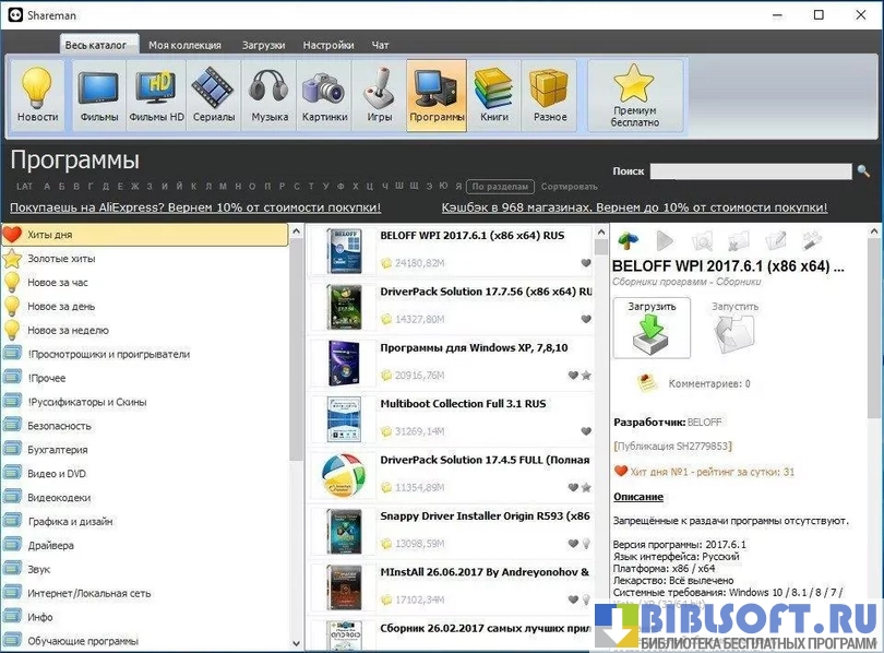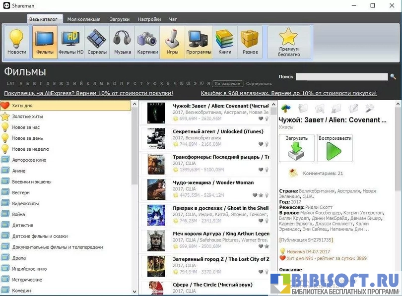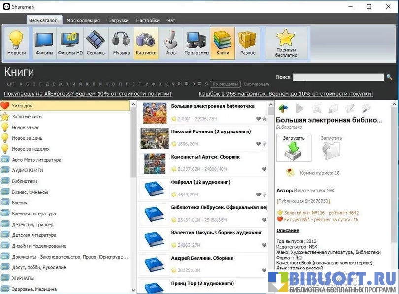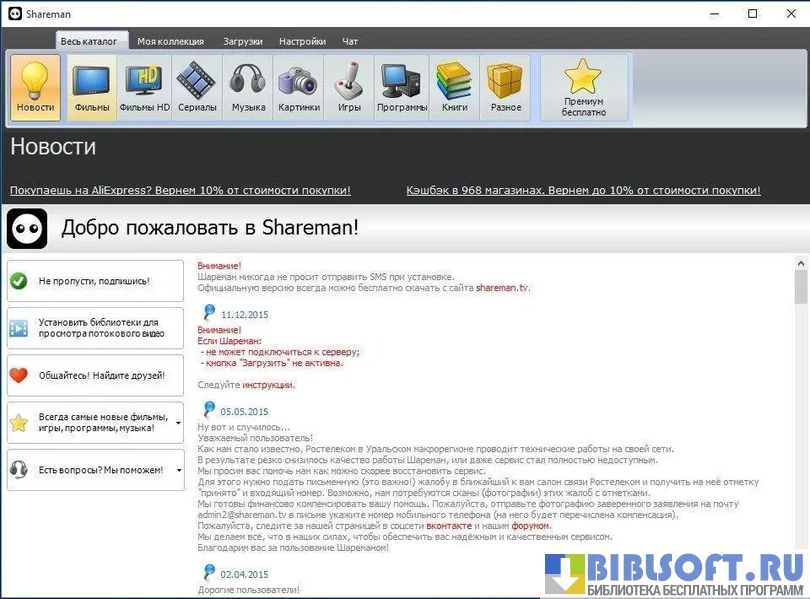 - Скорость закачки фильмов, музыки, книг и игр зависит не только от скорости вашего интернета, но и от загруженности сервера Shareman.