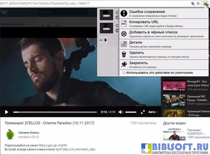 Плагин не только поддерживает все популярные форматы видео, но и может конвертировать загруженные видео в необходимый формат. Кроме того, плагин обладает несколькими интересными возможностями. Например, можно открыть историю просмотренных файлов и создавать черные списки, добавляя в них нежелательные видео. Скачанные файлы можно размещать в социальных сетях или отправлять их на мобильные гаджеты.