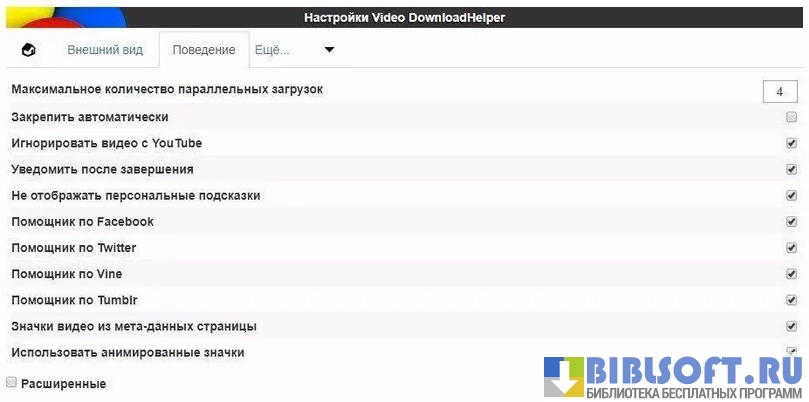 Возможности Video DownloadHelper