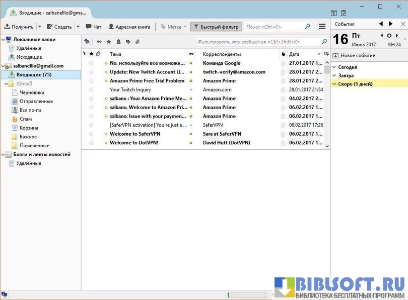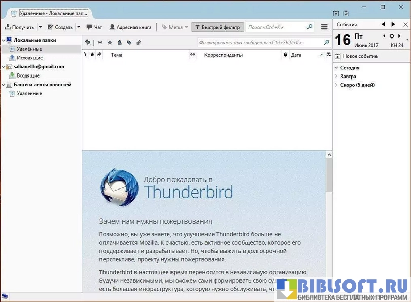 Mozilla Thunderbird – кроссплатформенное приложение для обработки электронной почты и RSS-трансляций. Расширение Lightnight добавляет в программу календарь. Программа обладает открытым кодом и бесплатно распространяется компанией Mozilla Foundation.
