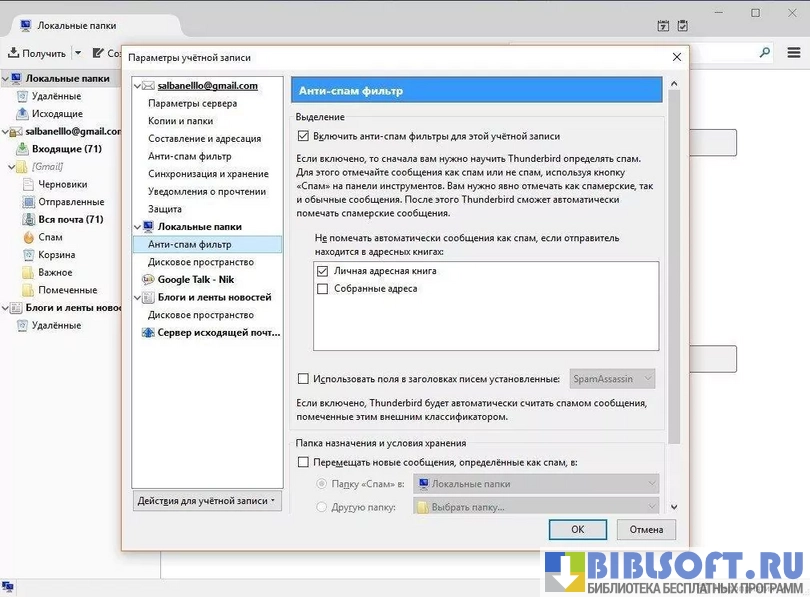 - настраиваемые спам-фильтры, блокирующие нежелательную корреспонденцию;