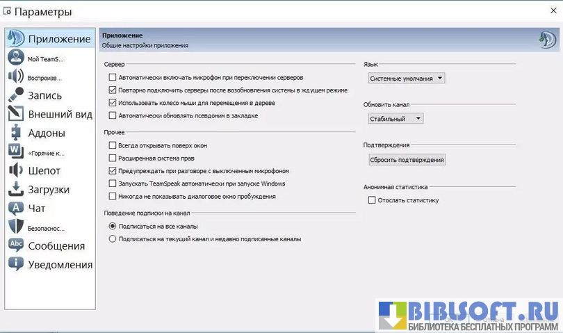 - выбор ближайшего к вам сервера при создании канала, для наиболее высокой скорости передачи звука;