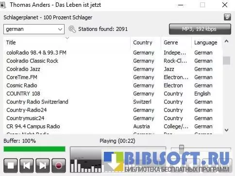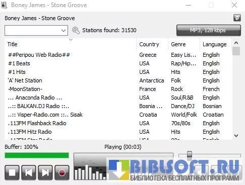 - Записывает воспроизводимые онлайн-эфиры выбранных радиостанций в аудиофайлы указанных форматов;