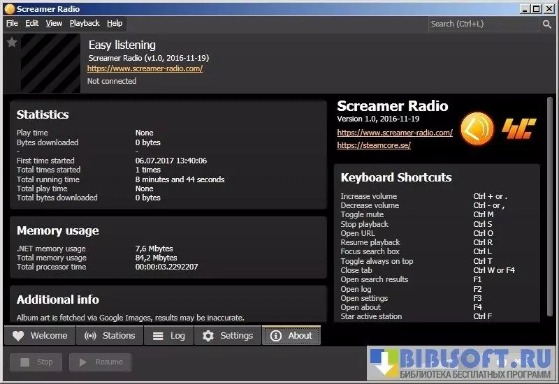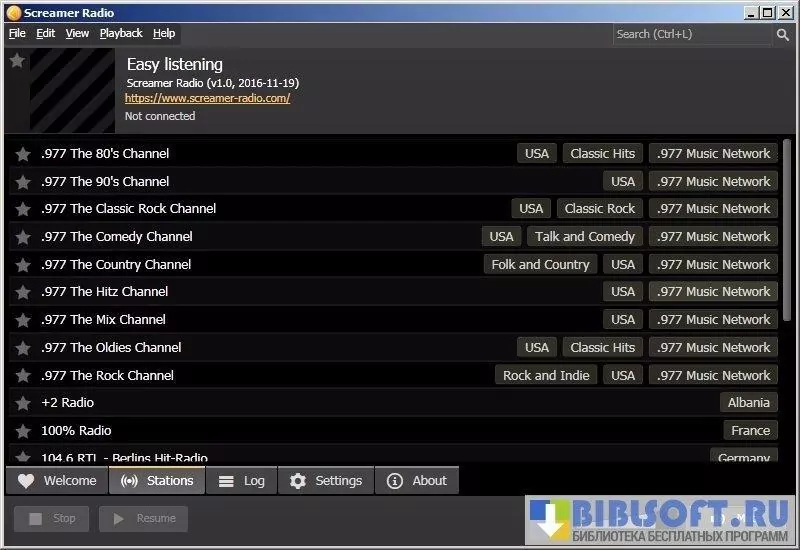Screamer Radio поддерживает все известные форматы потоков, позволяя проигрывать любые радиостанции из любых источников. Кроме того, программа предлагает несколько сотен станций на выбор, отсортированных по сети, языкам, жанру и стране. Такое представление каталога дает возможность быстро найти нужный поток, а возможность сохранения избранных радиостанций позволит быстро запускать прослушивание понравившихся потоков.