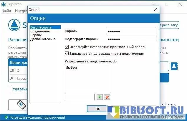 Каждому пользователю программы присваиваются идентификатор и пароль, которые необходимо ввести для получения возможности удаленного управления. Для удобства поиска удаленных компьютеров предусмотрена адресная книга.