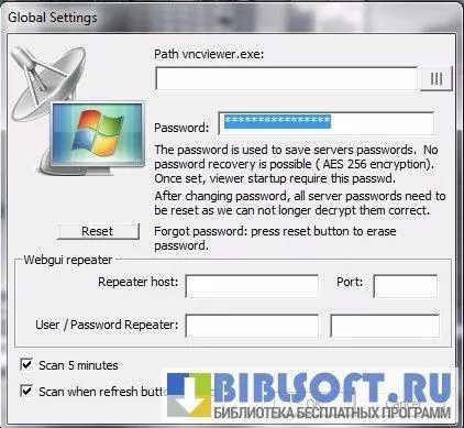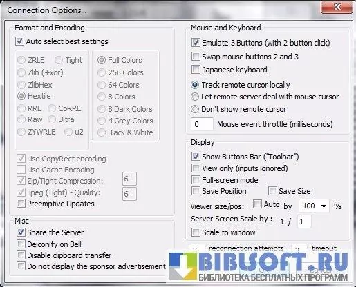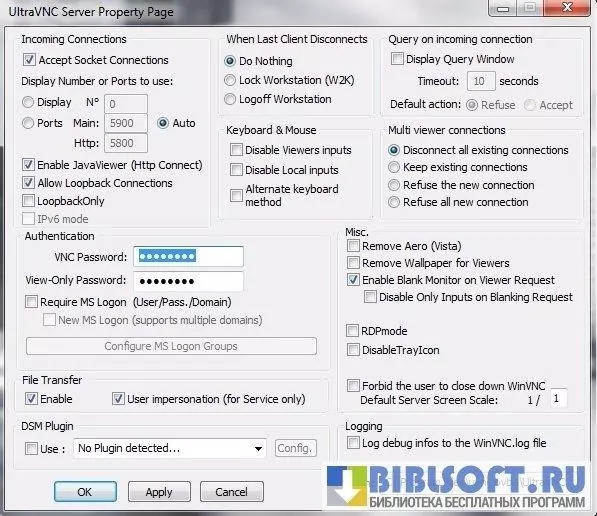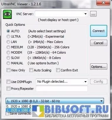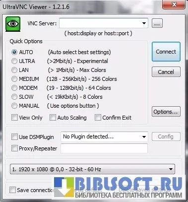 - Настройки инструмента позволяют установить автоматический доступ к серверу UltraVNC.