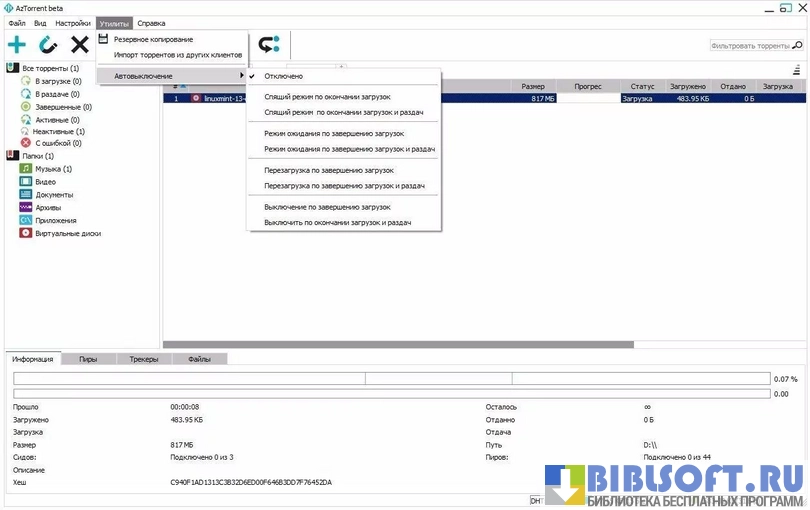 AzTorrent – торрент клиент, обладающий всем необходимым для комфортной загрузки интересующих вас фильмов, игр и прочего через файлообменный протокол BitTorrent.