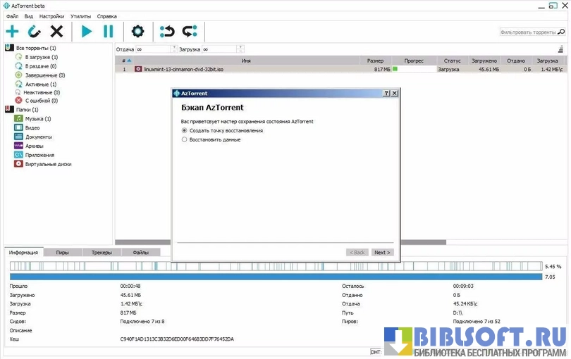 - создание резервных копий torrent файлов, хранение в каталоге программы;