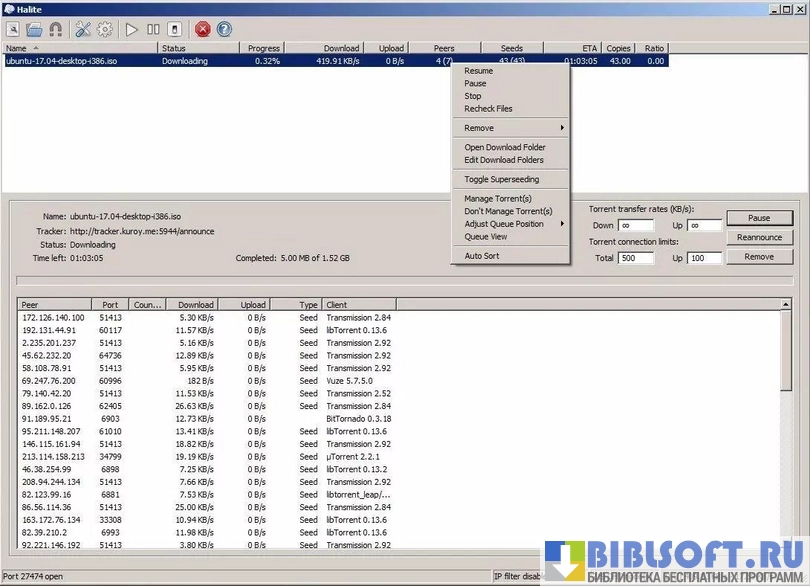 - одновременная загрузка и раздача нескольких торрентов;