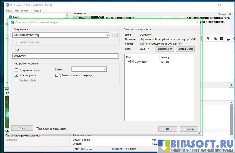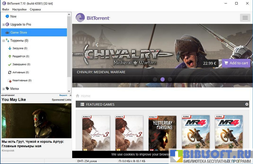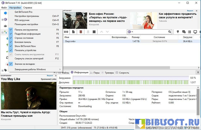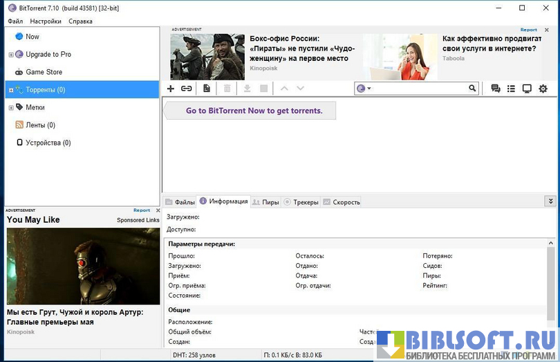 BitTorrent – бесплатный загрузчик файлов в пиринговых сетях. В связи с большим количеством прямых подключений к сидерам (пользователям, раздающим данные), достигается большая скорость загрузки. Все, что требуется – найти интересующую раздачу на трекере, а затем запустить torrent-файл.