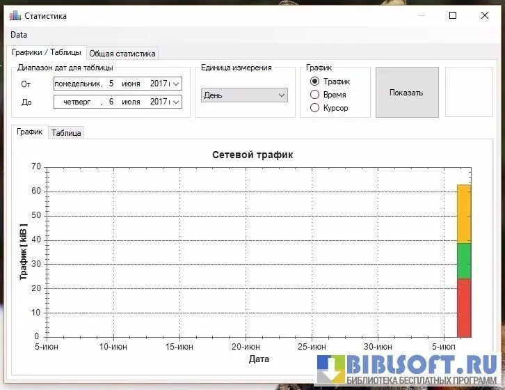 Для анализа текущего подключения приложением могут использоваться несколько параметров: скорость приема (передачи) информации, интервал времени и проч. Для большей наглядности программа может представить ее в графическом либо табличном виде. В установке на свой ПК утилиты NetTraffic будет заинтересована та категория пользователей, которой приходиться платить провайдеру за каждый переданный и полученный мегабайт.