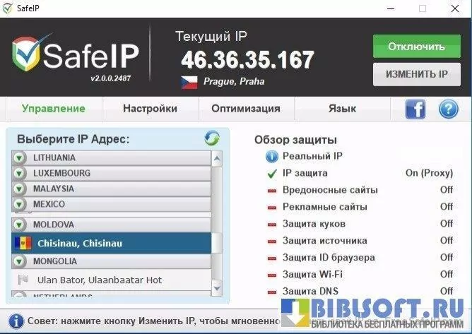 SafeIP – программа анонимайзер, позволяющая пользователю скрыть реальный IP используя доступные прокси-сервера.
