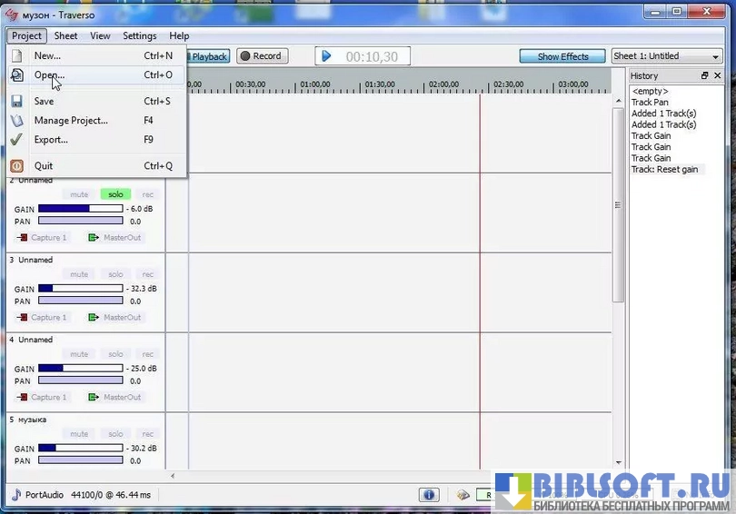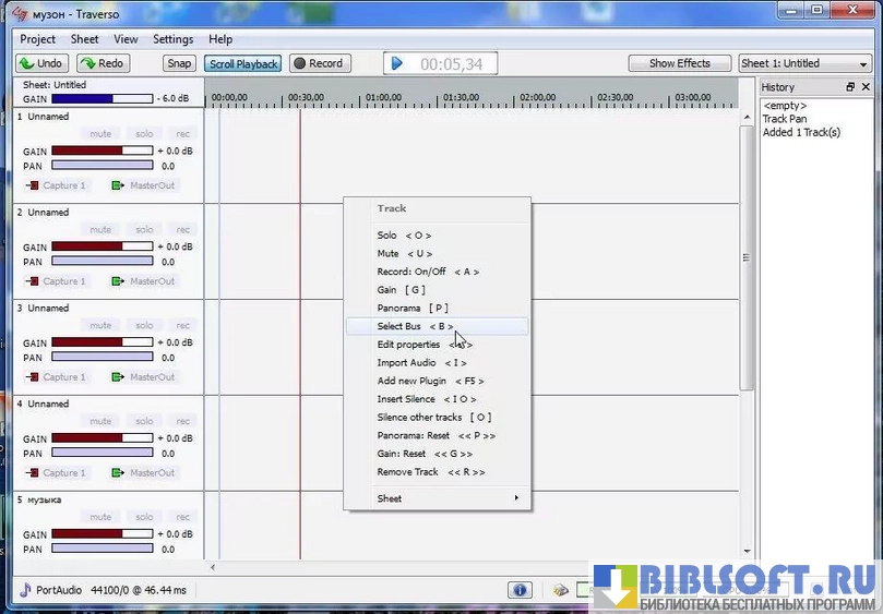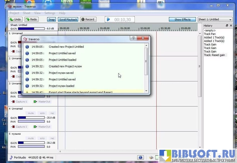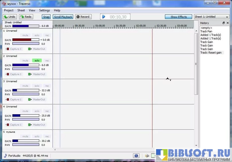 Traverso DAW – мультиплатформенный аудиоредактор для Windows. Поддерживает функцию многопоточного редактирования аудиофайлов, причем количество потоков ограничивается исключительно ресурсом «железа». Умеет конвертировать сэмплы в режиме «реального времени».