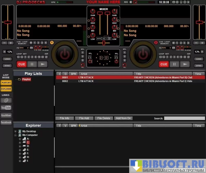 DJ ProDecks – простая функциональная программа для сведения треков на компьютере. Возможно легко находить и просматривать композиции. Ищите треки на жестком диске, перетаскивайте их в проигрыватели и начинайте микширование.