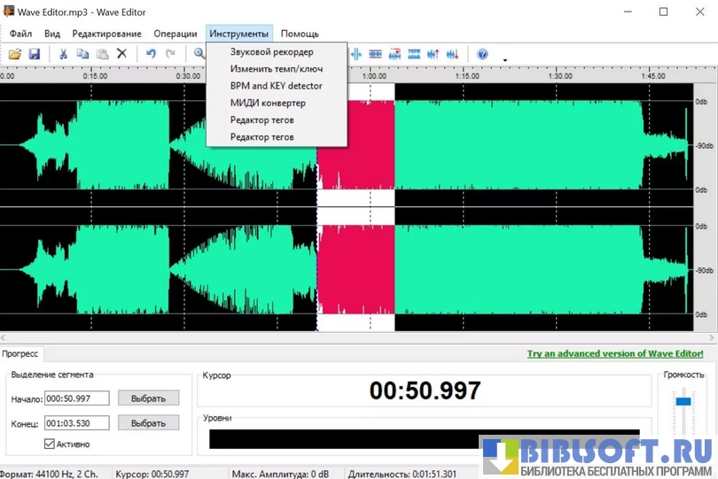 - поддержка технологии сохранения выделенных сегментов для создания отдельных аудиофайлов без удаления исходного файла.