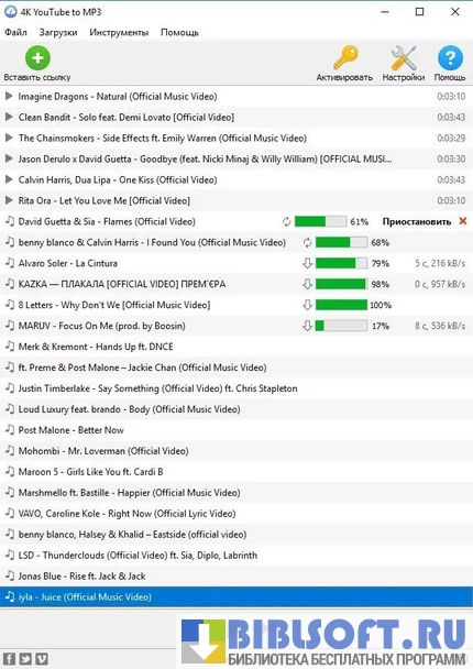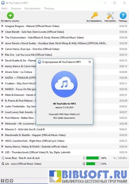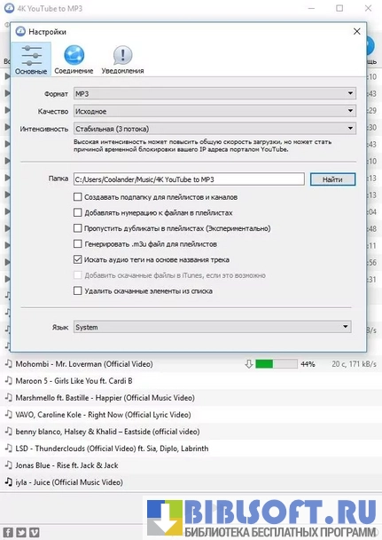 4K YouTube to MP3 – симбиоз загрузчика музыки с сервисов видеообмена и автоматизированного многофункционального аудиоконвертера для Windows. Может импортировать аудиодорожки из воспроизводимых онлайн-видео и сохранять их в .MP3-, .M4A- и .OGG-форматах.