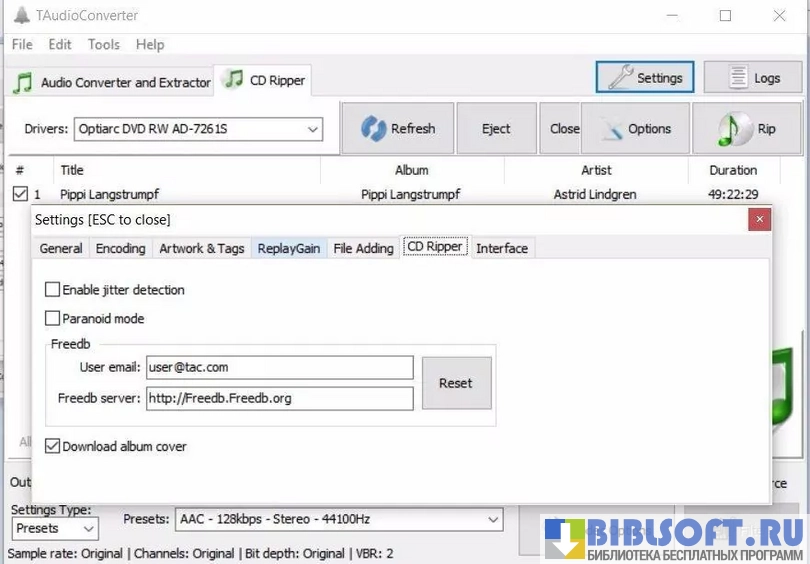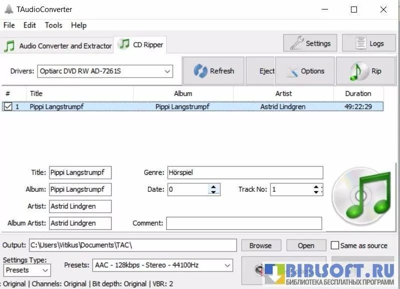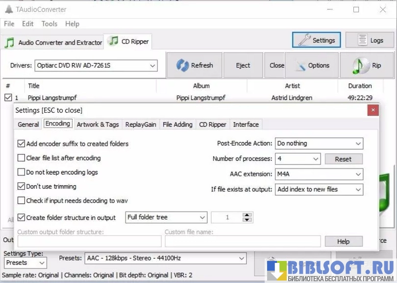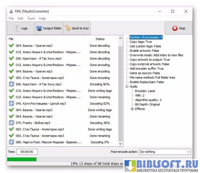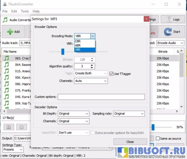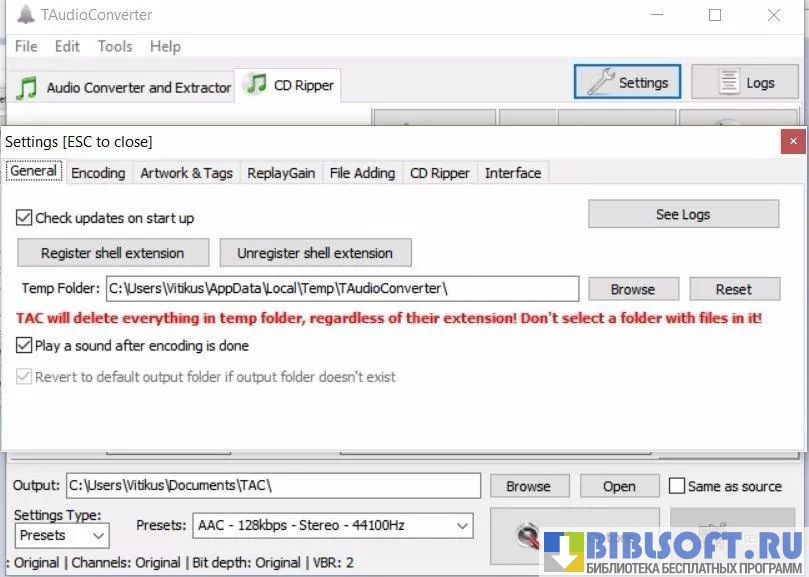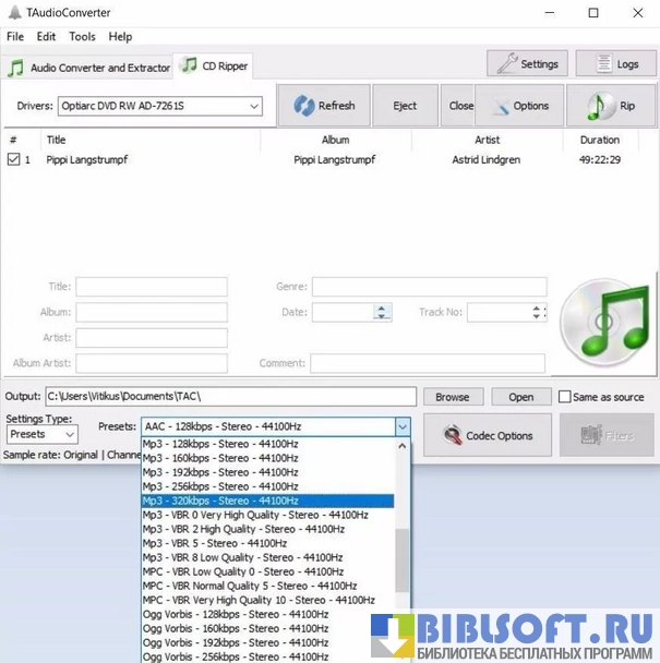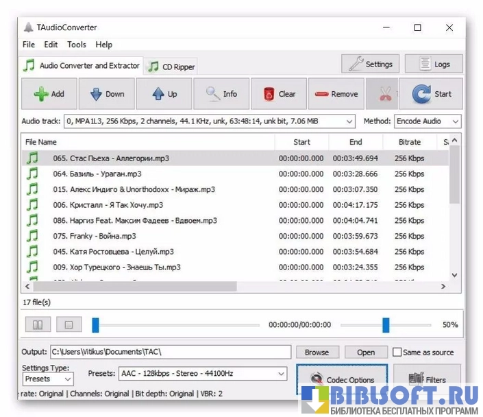 TAudioConverter – конвертер аудиофайлов. Может конвертировать один аудиоформат в другой, извлекать звук из видеороликов и менять битрейт аудиофайлов. Работает с многоканальными аудио и видео.
