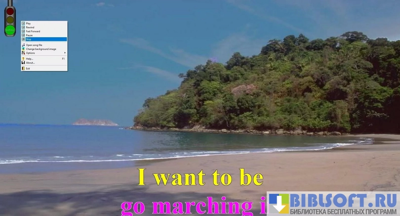 С помощью клавиатурной стрелки «Вниз» можно скрыть или показать список воспроизведения. Стрелка «Вправо» запустит выбранную композицию. Пользуясь стрелкой «Влево», можно перезапустить текущий трек. С помощью сигнала, похожего на дорожный светофор, программа подскажет пользователю, когда нужно начинать петь фразу.