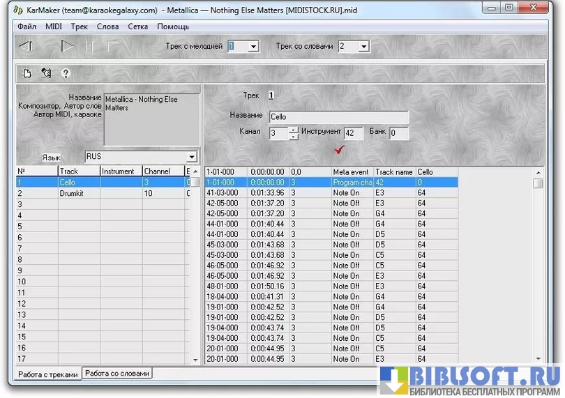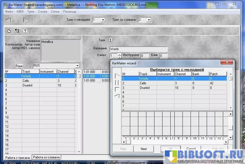 KarMaker – интерактивный редактор караоке для Windows. Позволяет объединять текст, музыку MIDI-формата и графические изображения в полноценный караоке-файл .kar-формата.