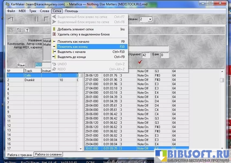 - Предназначен исключительно для редактирования караоке-файлов, создаваемых с нуля – не может изменять уже скомпилированные караоке-файлы;